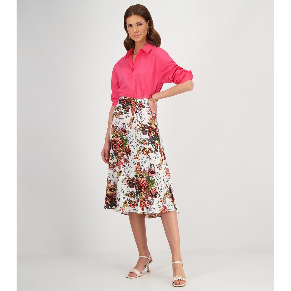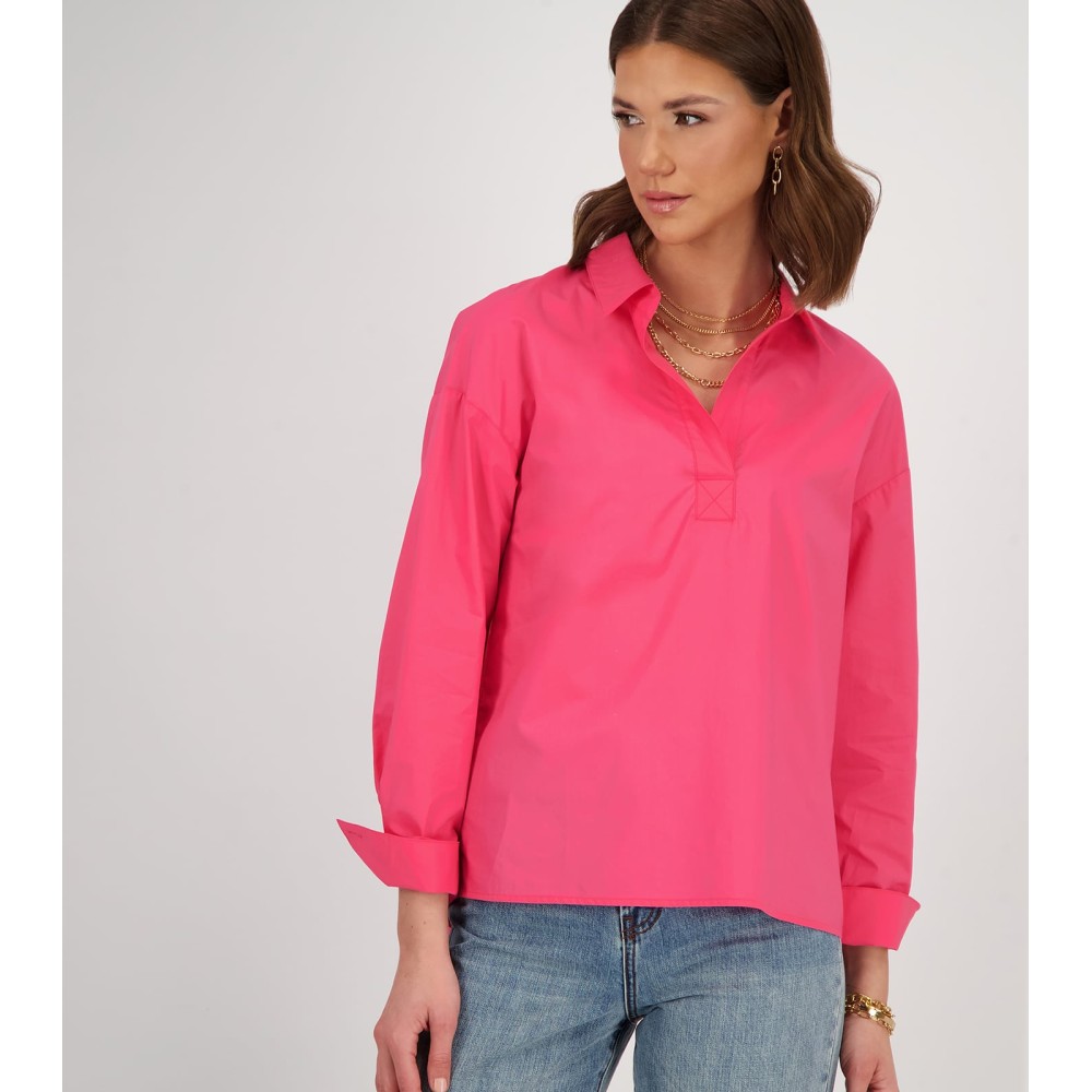 Γυναικεία μπλούζα με στοιχεία πουκαμίσου κατασκευασμένη από βαμβακερή ποπλίνα. Ένα ιδιαίτερα πυκνό, ανθεκτικό και εκλεπτυσμένο ύφασμα. Με πιέτα στη πλάτη και μανσέτες στα μανίκια. Μια κομψή επιλογή για τα ανοιξιάτικα σύνολα σας!